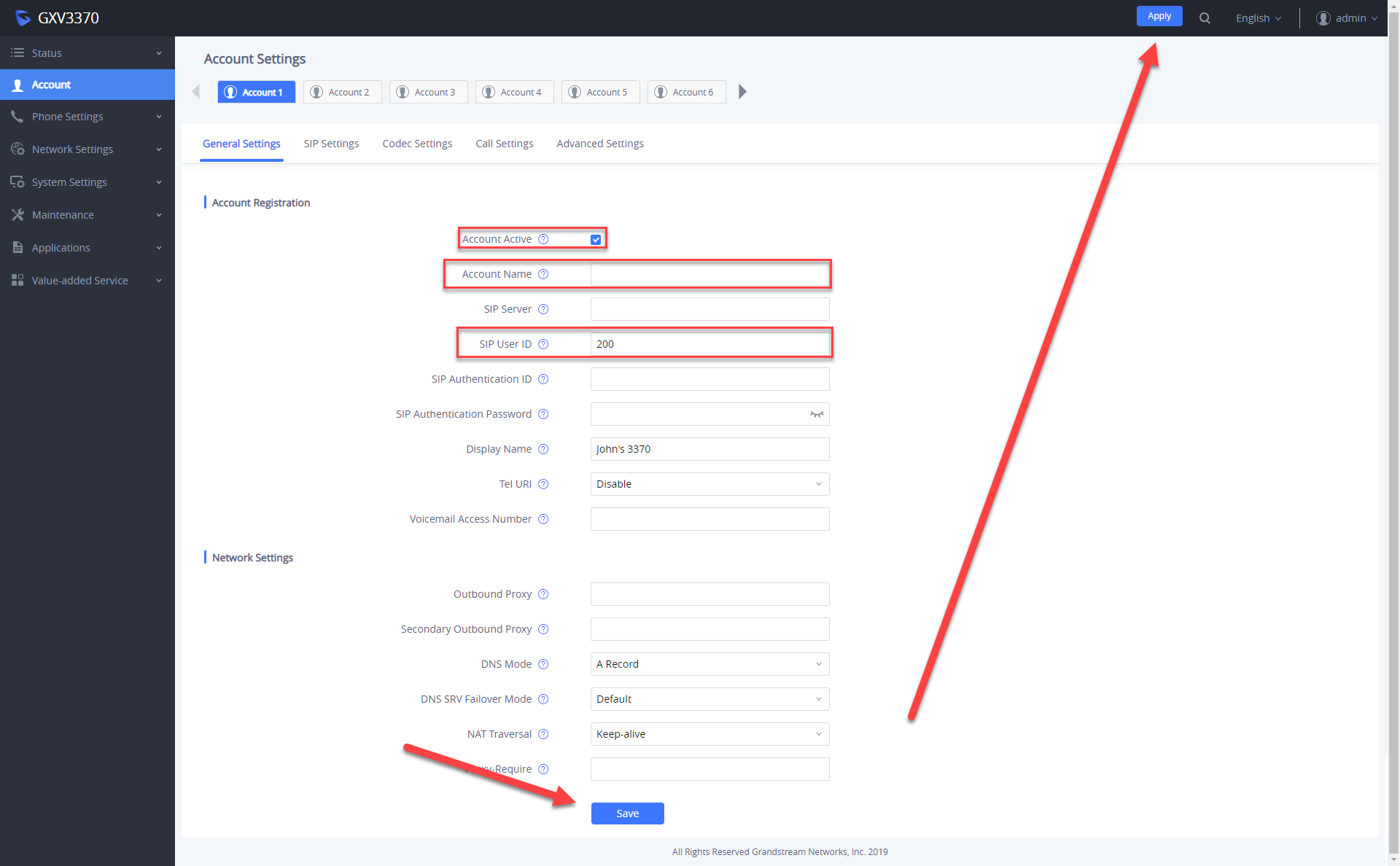 AVM-1 (GXV3370) Account Settings
